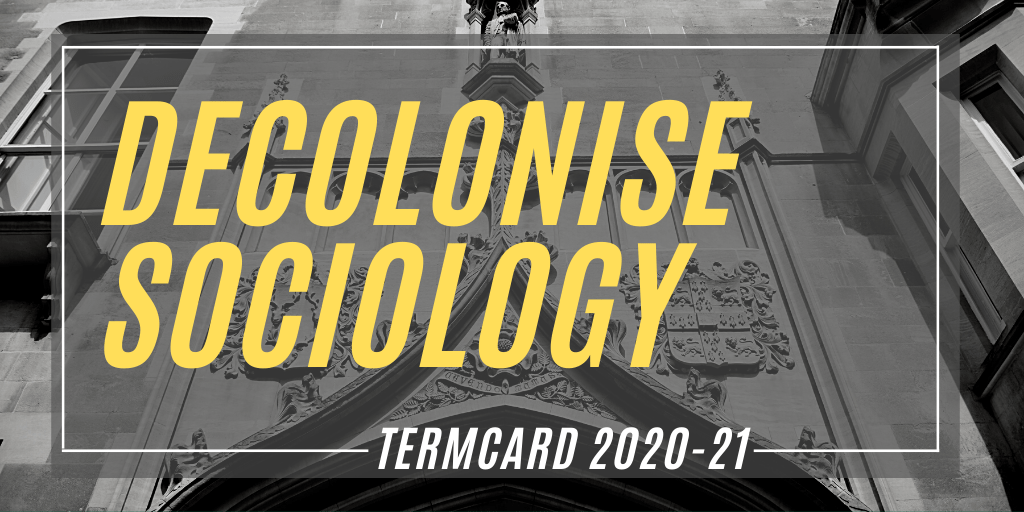 Decolonisation efforts at the Department of Sociology began in earnest on 31 Oct 2017 when the first open meeting was held to discuss what decolonisation might mean in the Cambridge context. The areas of focus raised in that meeting included the classroom environment and the curriculum, supervisions, essays and exams, reporting and feedback, and whiteness and culture change.